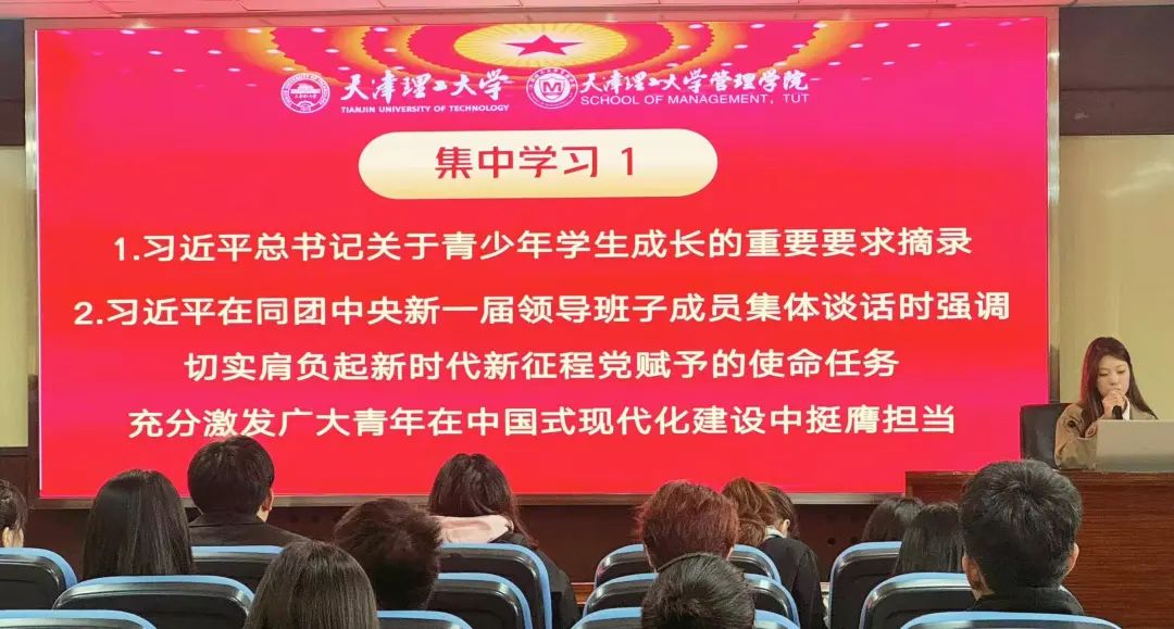 主席团带领全员集中学习了《习近平总书记关于青少年员工成长的重要要求摘录》、《习近平总书记在同团中央新一届领导班子成员集体谈话时的重要讲话精神》、《关于学联员工会工作人员改进作风服务同学的若干规定》等相关文件。会议同时强调规范化、科学化的组织建设与作风建设,要求参会成员将所学内容内化于心、外化于行,为推动研究生会工作高质量发展贡献智慧与力量。