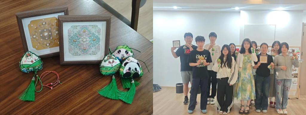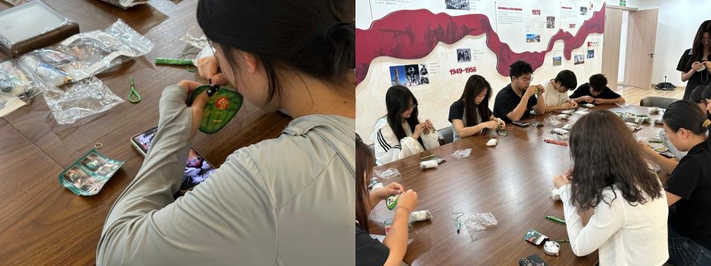 端午植物香包制作同样精彩。同学们拿出预裁布料、香料包,将布料缝合成袋,倒入混合干花香料,再用抽绳、流苏等装饰点缀。一针一线间,缝起的是对端午传统的传承,香料氤氲,散发的是古老文化的芬芳,更是承载着对传统的敬意。从布料缝合到香料填充,从封口装饰到成品诞生,一针一线、一饰一物,皆传递着端午祝福,让古老习俗在当下焕发生机。