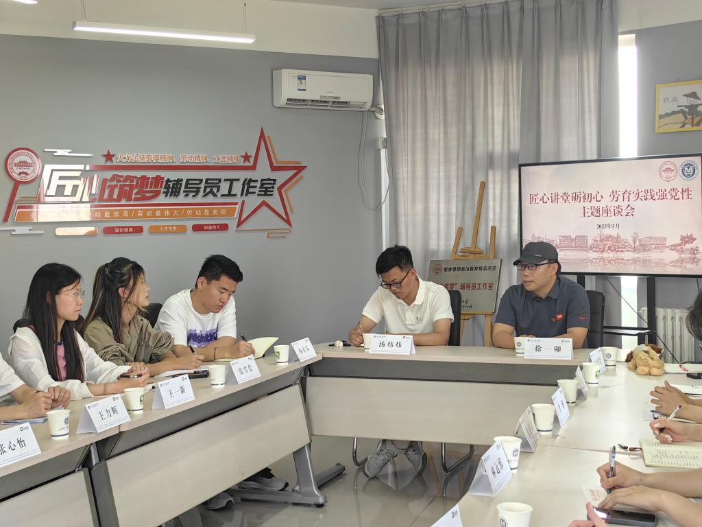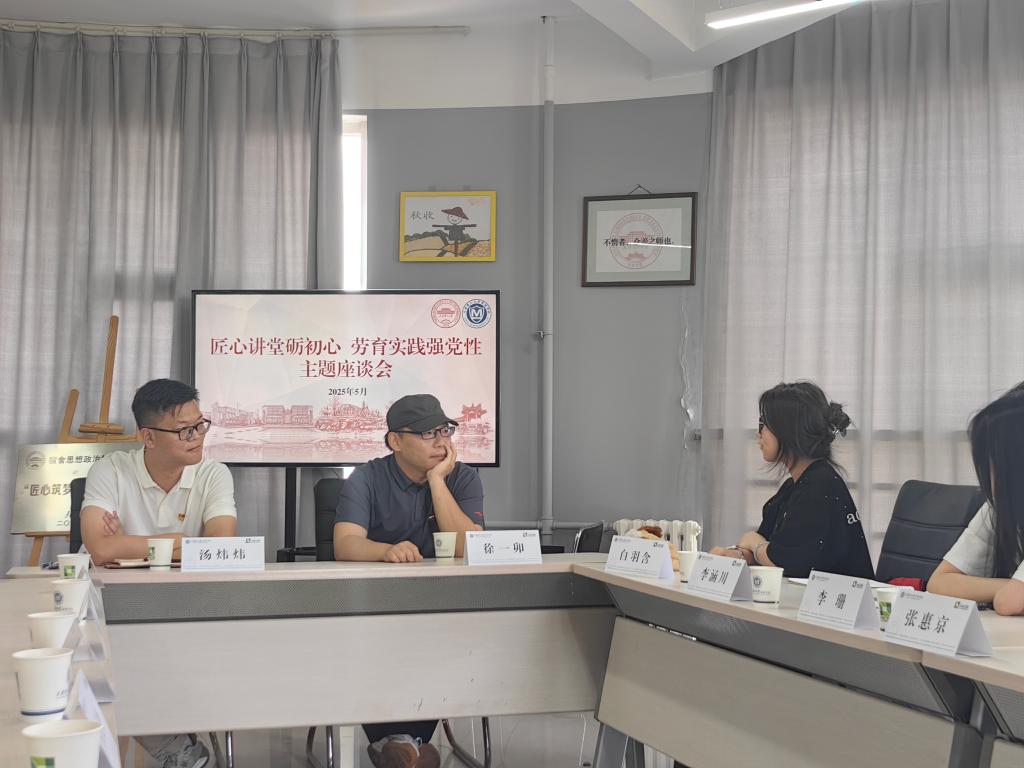 5月29日,党支部在17号楼918“匠心筑梦”辅导员工作室开展“匠心讲堂砺初心 劳育实践强党性”主题座谈会。本次活动邀请到马克思主义学院的徐一卯老师,徐老师在思政课领域深耕多年,以生动鲜活的方式引导员工树立正确的价值观和劳动观。座谈会上,徐老师以丰富的历史事件为引,深入浅出地阐述了劳动的重要性。徐老师还结合自身经历,用朴实的语言分享了自己在劳动中的感悟与成长,让同学们倍感亲切。