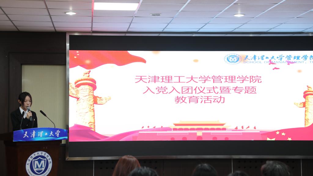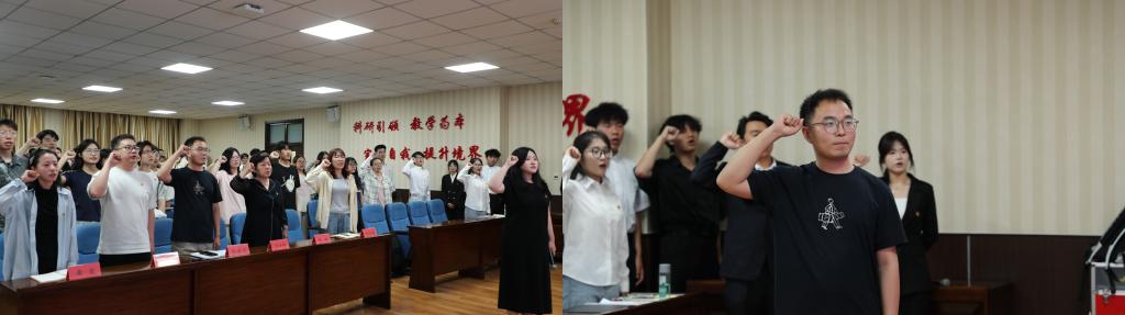 学工办副主任张婷、团委书记于世川分别带领预备党员和团员青年进行入党宣誓和入团宣誓。在铿锵有力的誓词中,同学们表达了要为共产主义事业奋斗终身的决心和信念。