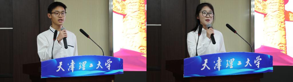 预备党员代表潘泱帆同学表示,作为新时代青年党员要提升党性修养、终身学习、服务人民,要将党的先进性落实到实际工作中,不忘初心、砥砺前行。新团员代表孟川皓同学表示,站在团旗下,感受到的不仅是荣誉,更是一份沉甸甸的责任,立志争做一名合格的新时代共青团员。随后,与会老师为预备党员代表和新团员代表佩戴党徽、团徽。