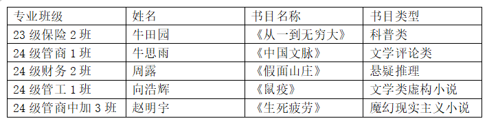在分享结束后,评审组根据同学们的分享内容准备、逻辑清晰度、语言表达等方面进行了综合考察。最终,牛思雨同学和向浩辉同学凭借出色的表现荣获“读书之星”称号,他们的分享不仅展现了个人的阅读深度,更引发了大家对书籍内容的进一步思考和讨论。