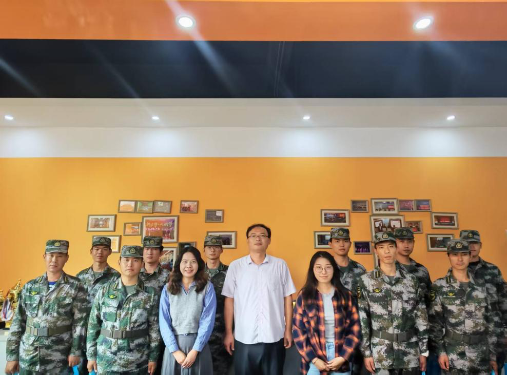 最后,学院领导和新生辅导员将慰问品亲手送交到教官手中并合影留念。