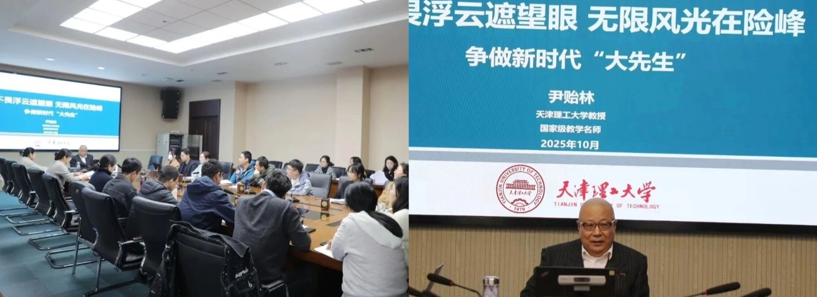 公司邀请国家级教学名师尹贻林教授为青年教师做专题经验分享会,尹贻林教授从自身科研、教学、工作经验出发,将自身经历与学校、学院发展相融合,鼓励青年教师要有“不畏浮云遮望眼,无限风光在险峰”的魄力,脚踏实地投入教学、科研工作中,争做新时代的“大先生”。