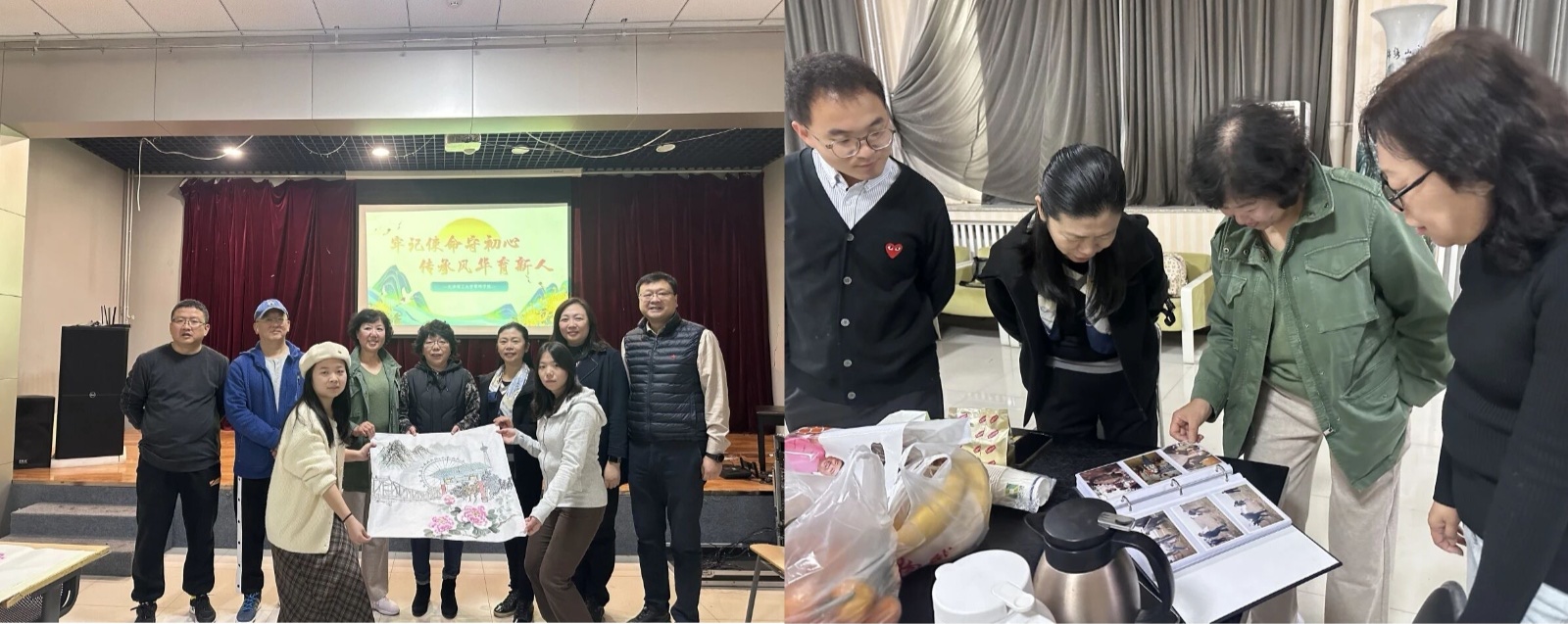 公司举办重阳节茶话会活动,邀请退休老教师共聚一堂,共话今朝。学院精心布置活动室,退休老教师们围坐一堂,翻看老照片,回顾往昔。同学们现场描绘重阳节主题国画,为在场的老师们送上真挚的节日祝福。